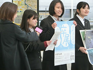1月23日(水)、生徒を代表して、岩崎さん、奥野さん、亀谷さんが街かど伝言板にて宣伝をさせていただきました。